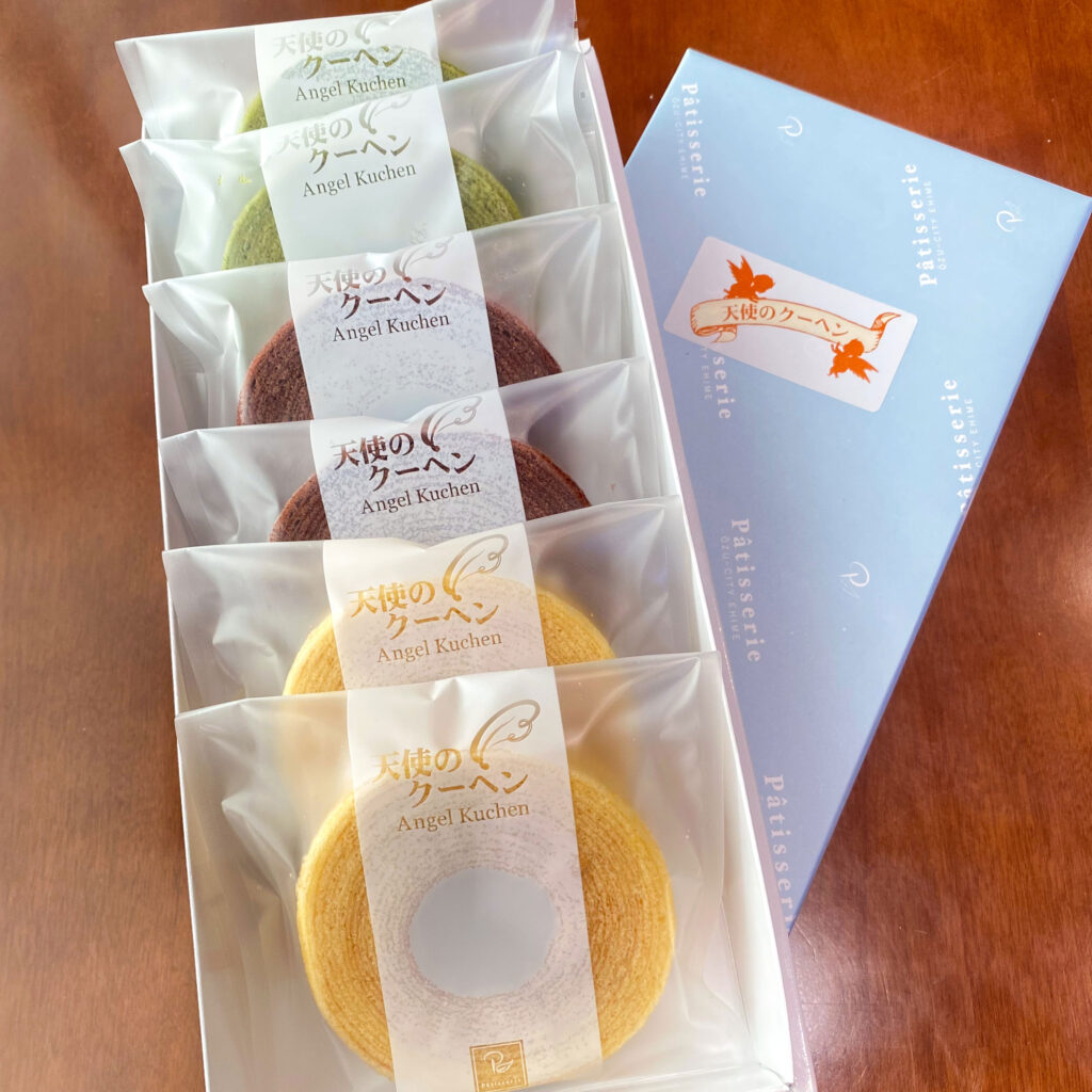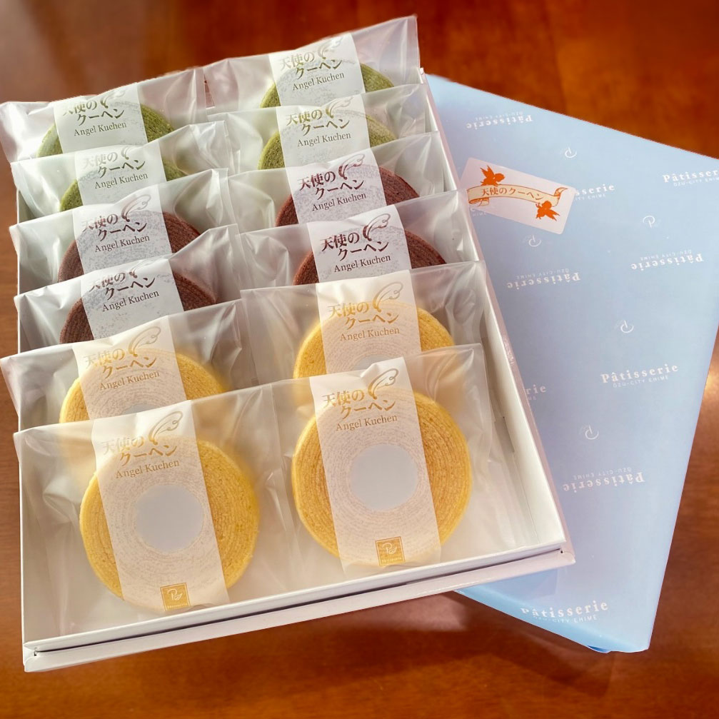 ロールケーキ 手間ひまを惜しまず丁寧に焼き上げた、市松模様が美しい自慢のロールケーキ。代々パティシエが受け継いできた伝統の技で、ひとつひとつ心を込めて作っています。しっとりとした生地に、あっさりとなめらかなバタークリームがよくなじみ、優しい味わいです。 ココアロール ¥690(¥750) ご注文はこちら 抹茶ロール ¥690(¥750) ご注文はこちら イチゴロール ¥690(¥750) ご注文はこちら ふわふわロール ¥690(¥750) ご注文はこちら ※ロールケーキは1本を5つにカットした状態でお渡しいたします。 焼き菓子 天使のクーヘン 丸い天使の輪をイメージして作られたバウムクーヘン バニラ味 ¥204(¥220) 抹茶味 ¥204(¥220) ココア味 ¥204(¥220) ギフト用6個入りセット ¥1,389(¥1,500) ご注文はこちら ギフト用12個入りセット ¥2,685(¥2,900) ご注文はこちら オンラインショップへ