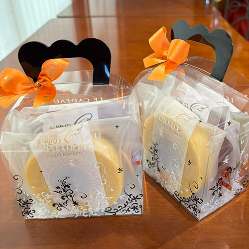 ロールケーキ 手間ひまを惜しまず丁寧に焼き上げた、市松模様が美しい自慢のロールケーキ。代々パティシエが受け継いできた伝統の技で、ひとつひとつ心を込めて作っています。しっとりとした生地に、あっさりとなめらかなバタークリームがよくなじみ、優しい味わいです。 手間ひまを惜しまず丁寧に焼き上げた、市松模様が美しい自慢のロールケーキ。代々パティシエが受け継いできた伝統の技で、ひとつひとつ心を込めて作っています。しっとりとした生地に、あっさりとなめらかなバタークリームがよくなじみ、優しい味わいです。 ココアロール ¥870(¥939) ご注文はこちら 抹茶ロール ¥870(¥939) ご注文はこちら イチゴロール ¥870(¥939) ご注文はこちら ふわふわロール ¥870(¥939) ご注文はこちら ※ロールケーキは1本を5つにカットした状態でお渡しいたします。 ※ロールケーキは1本を5つにカットした状態でお渡しいたします。 焼き菓子 天使のクーヘン 丸い天使の輪をイメージして作られたバウムクーヘン 丸い天使の輪をイメージして作られたバウムクーヘン バニラ味 ¥250(¥270) 抹茶味 ¥250(¥270) ココア味 ¥250(¥270) ギフト用3個入りセット ¥920(¥993) ご注文はこちら ギフト用6個入りセット ¥1,650(¥1,782) ご注文はこちら ギフト用12個入りセット ¥3,300(¥3,564) ご注文はこちら オンラインショップへ